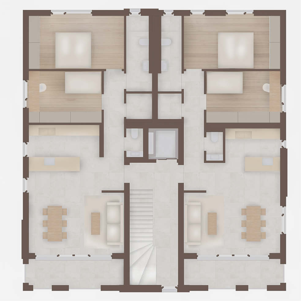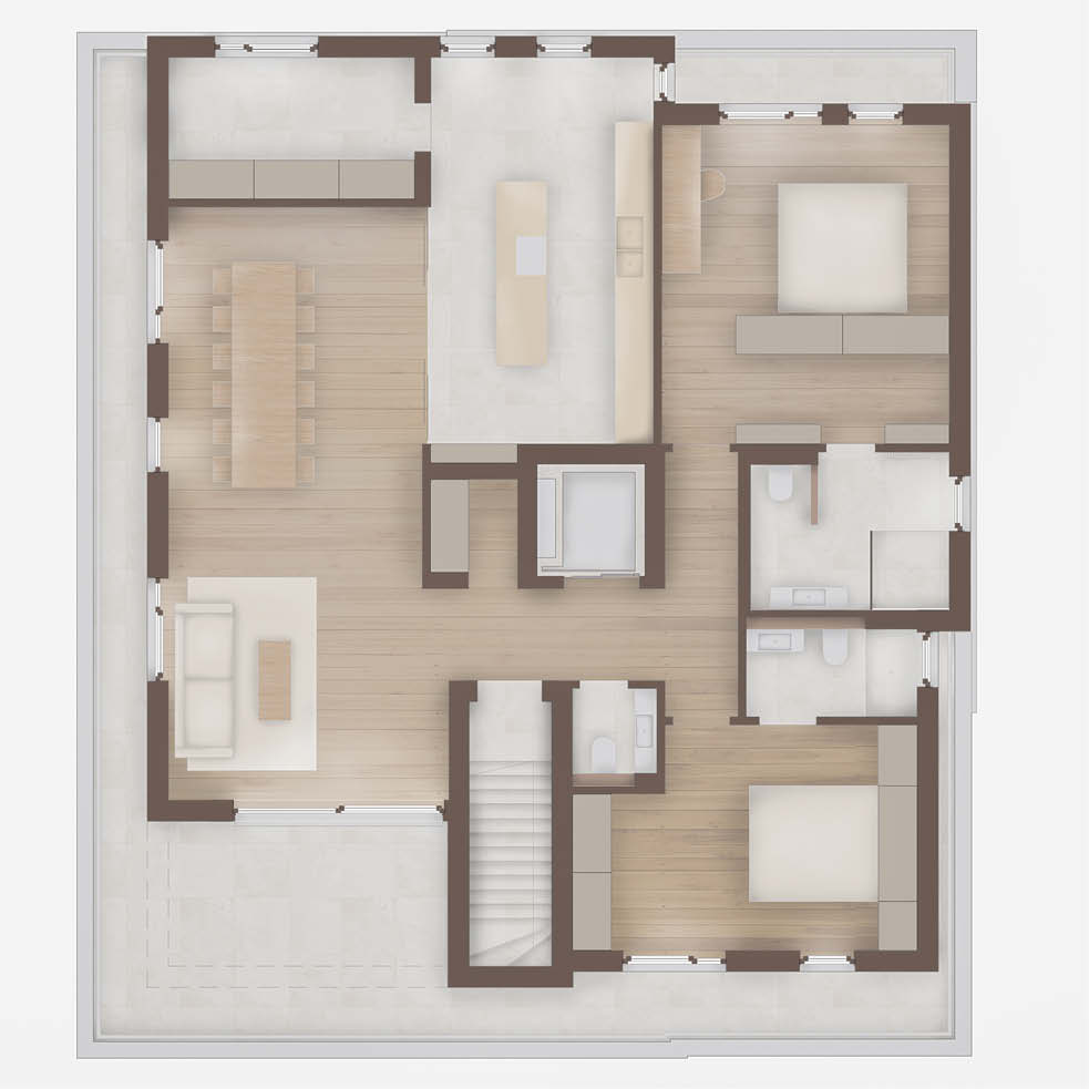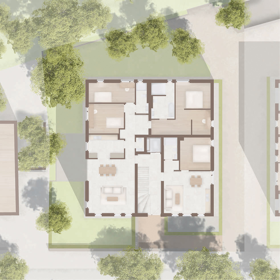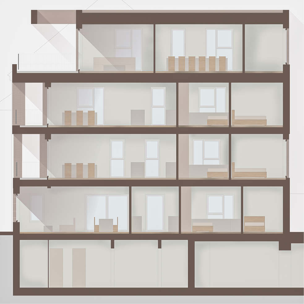 Das Gebäude vereint zeitgemäßes Wohnen mit hoher Aufenthaltsqualität – sowohl im Inneren als auch im Stadtraum. Durchdachte Grundrisse, großzügige Fensteröffnungen und gut proportionierte Außenräume schaffen ein modernes, urbanes Wohnumfeld mit starker Verankerung im Kontext.