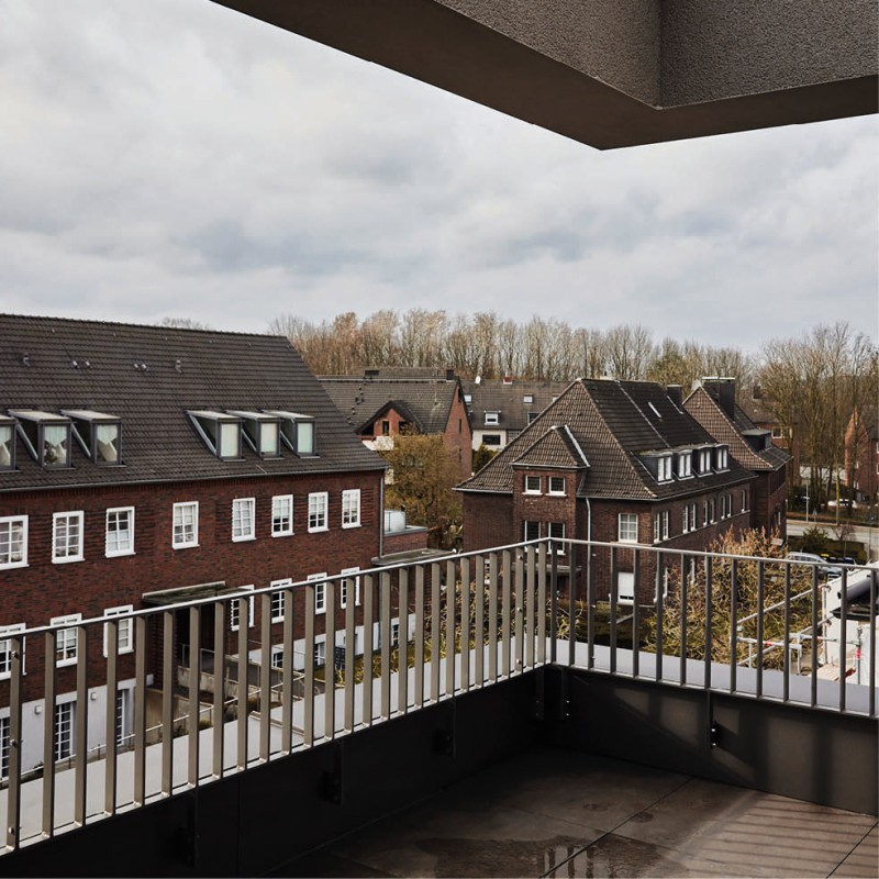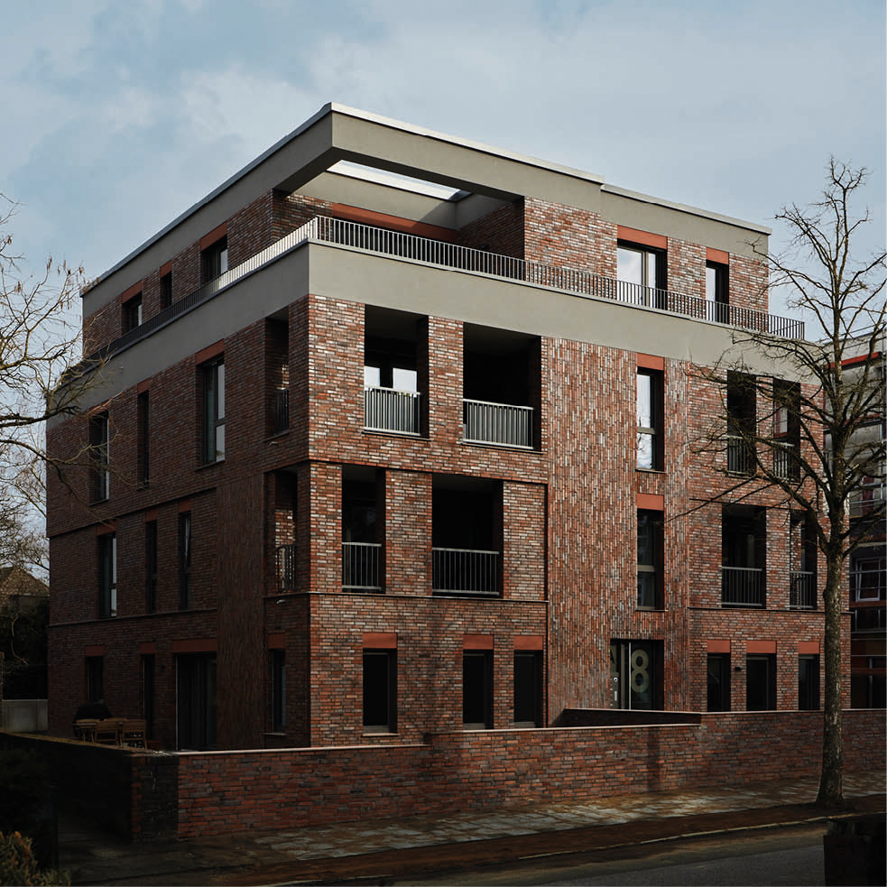 Mitten im urbanen Gefüge der Bottroper Innenstadt realisierten wir ein Mehrfamilienhaus, das sich durch seine plastische Ziegelfassade und klare Architektursprache harmonisch in das gewachsene Stadtbild einfügt.